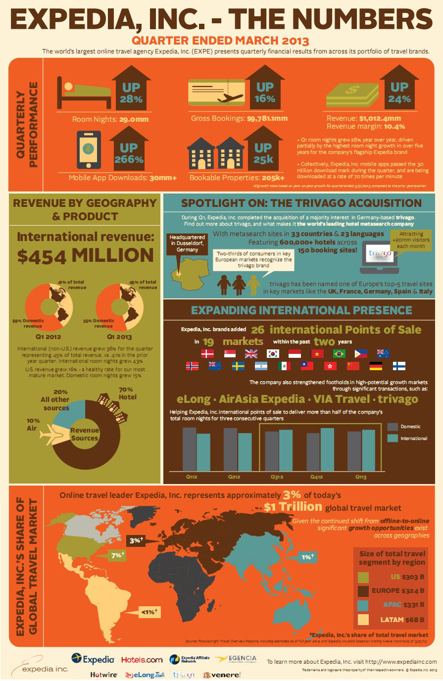 2013年4月25日,Expedia公布了其截止3月31日的第一季度财务业绩。