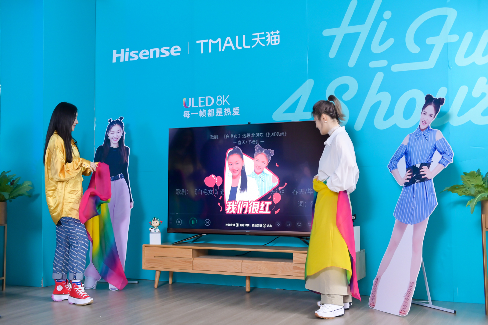 这个跟金靖一样“戏精”的AI小聚,来自于海信聚好看平台。聚好看也将马上迎来四周年的生日,在现场,“靖瑛主任”为庆祝海信聚好看四周年快乐,即兴上演了一出改编版歌剧《白毛女》,“北风那个吹,聚好看四周年,祝你生日快乐,送我们两个会员。”小聚内心的OS应该是:没想到你是这样的金靖。