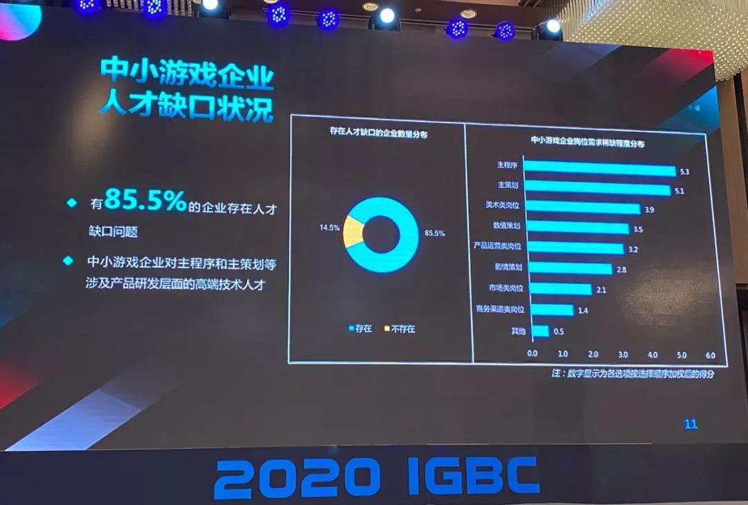 有一个电影说了,21世纪什么最贵,人才最贵,确实是这样。有85.5%的企业存在人才缺口。从存在人才缺口的企业的岗位需求来看,涉及产品研发层面的高端技术人才稀缺程度最高,如主程序和主策划;其次,美术类、数值策划和产品运营类也是稀缺程度较高的岗位。为了改善这种局面,音数协游戏工委也进行了多种尝试,比如:与部分技术厂商合作推出一系列培训课程,建立人才库,希望通过此举向游戏公司输送中高端技术人才,缓解目前游戏产业人才短缺的情况。