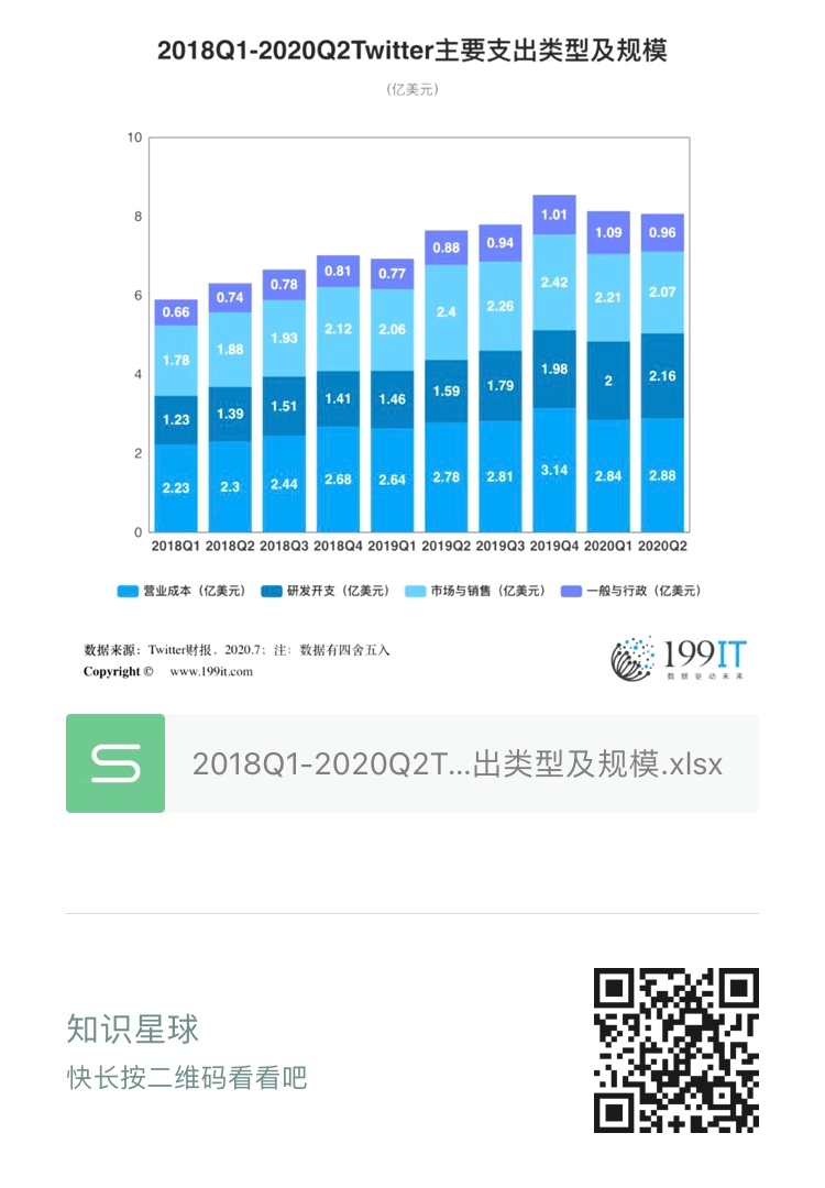 - 2018Q1-2020年Q2 Twitter主要收入来源及增长率(附原数据表)