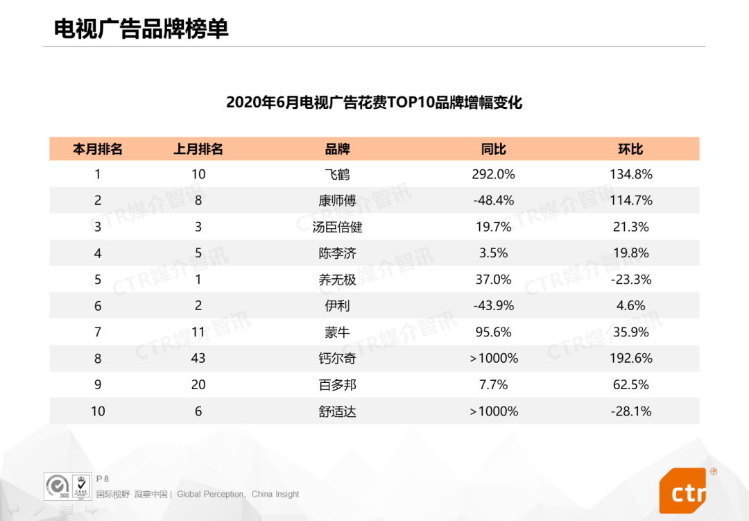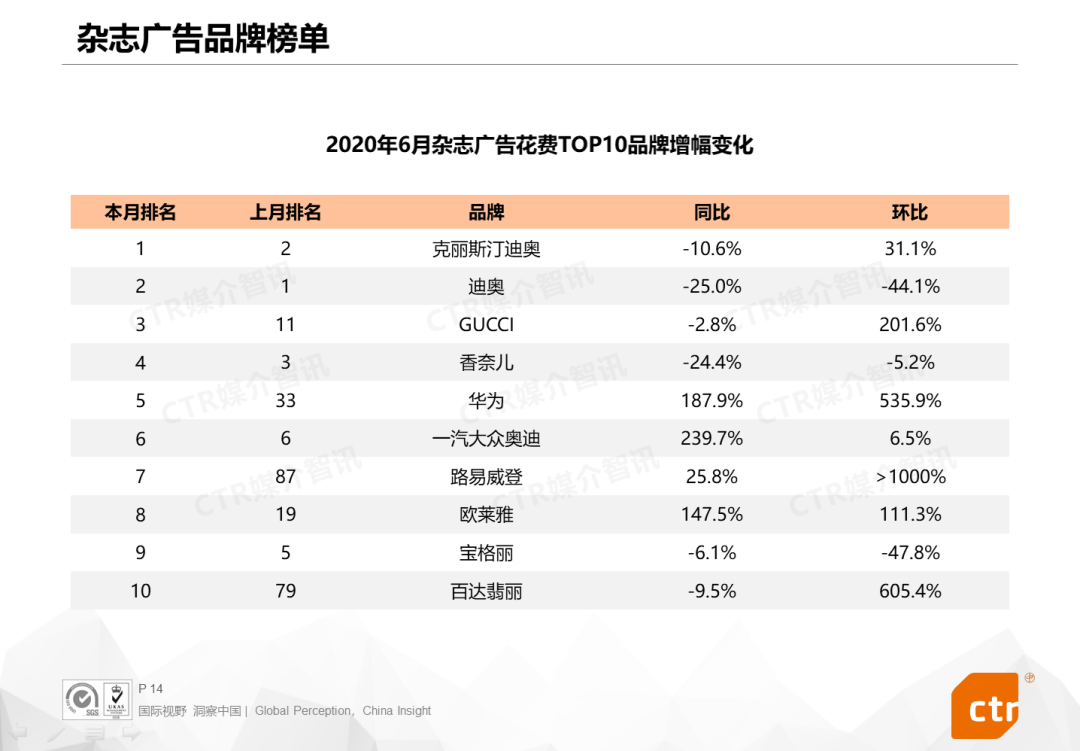 根据CTR媒介智讯的数据显示,2020年6月广告市场整体刊例花费环比增长1.0%,同比降幅进一步收窄为12.6%。与去年同期相比,广告市场基本上恢复到了疫情前的水平。从广告渠道表现来看,电梯广告增长明显,海报和LCD的同比增长都在20%以上。其他渠道的同比虽呈现降幅但环比均有提升。