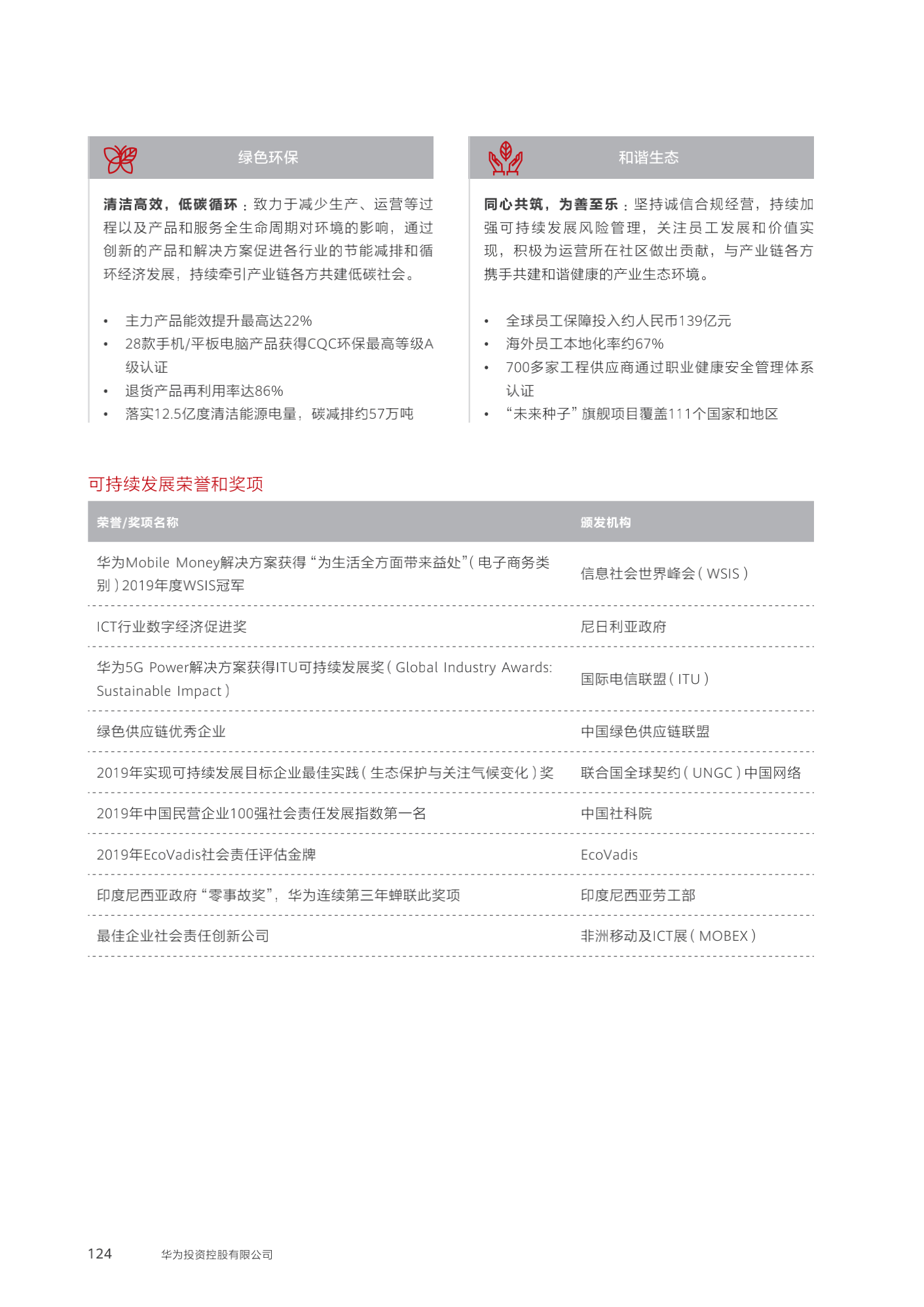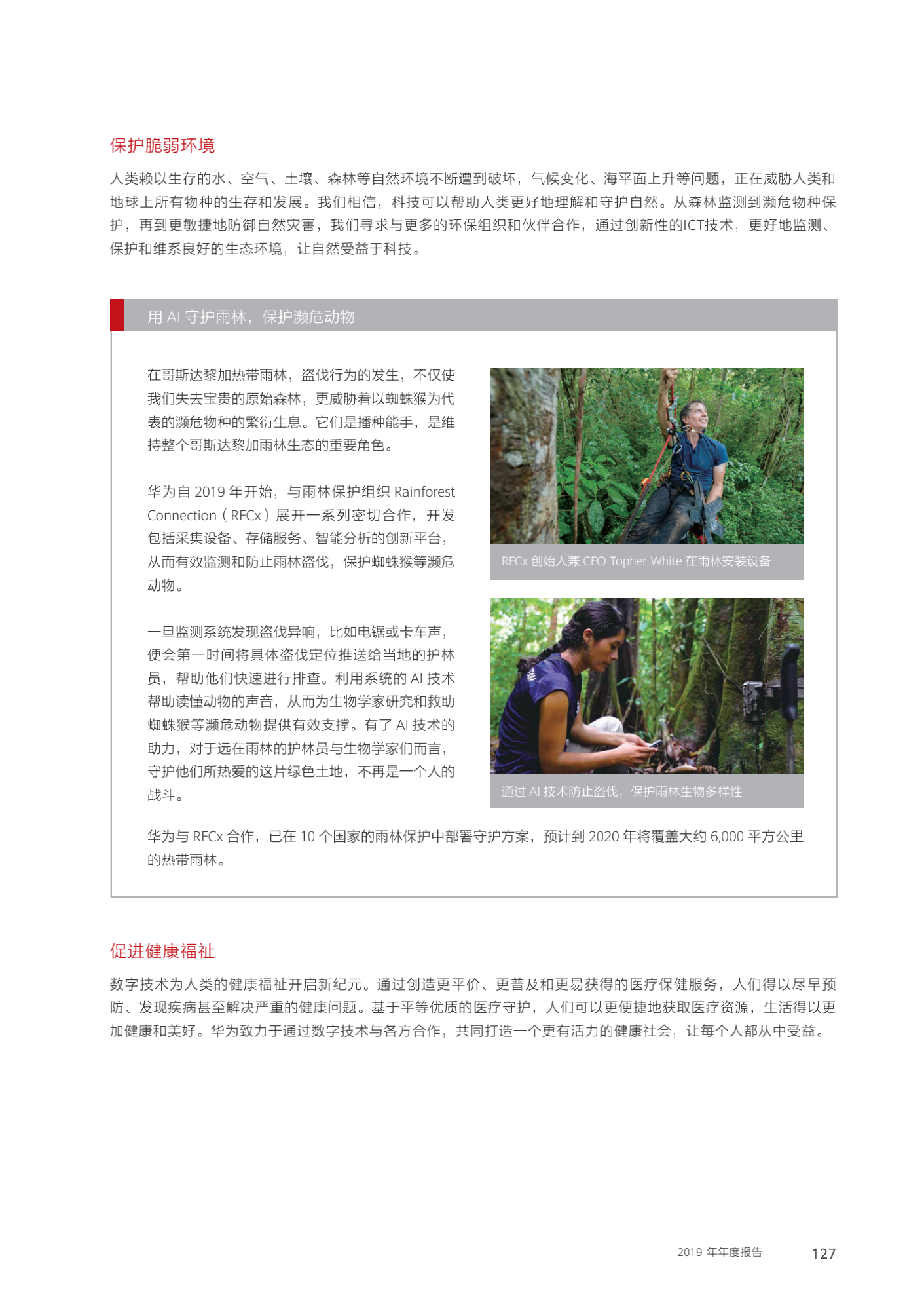 智能世界加速到来,挑战与机遇 并存 “万物感知、万物互联、万物智能”的智能世界 正加速到来,数字技术正在重塑世界。预计到 2025年,全球5G用户渗透率将达到58%。5G与 4K+、VR/AR、AI、云等技术的融合应用,将为 个人、家庭和行业带来超乎想象的深刻变革。 超高清视频直播、智慧课堂/远程教育、在线医 疗、虚拟娱乐等跨越距离、时间和事物表象的 “沉浸式”全新体验将成为可能 ;5G将助力制 2019 年年度报告 03 造、电力、交通、金融等各行各业实现数字化、智能化 转型,为行业用户带来新价值。同时,技术的溢出效应 开始显现,ICT技术成为经济增长新动力,带动世界经济 进入新的发展周期。 我们坚信,未来二、三十年人类社会必然走进智能社 会。各行各业数字化、智能化进入快速发展期,带来巨 大的发展潜力。与此同时,人类在气候环境、社会发展 和网络安全等领域正面临严峻挑战,国际宏观环境的不 确定性加剧,经济下行压力加大。但人类社会对美好生 活和繁荣发展的追求不可阻挡,我们唯有秉承发展优先 的原则,通过全球开放合作,依赖技术创新、科技突 破,才能克服方方面面的新挑战,迈向进一步的繁荣。 我们着眼更长远的未来进行业务布局,抓住行业数字 化、智能化的历史机遇 : 持续技术突破,推动产业发展,为客户和 社会创造更大价值