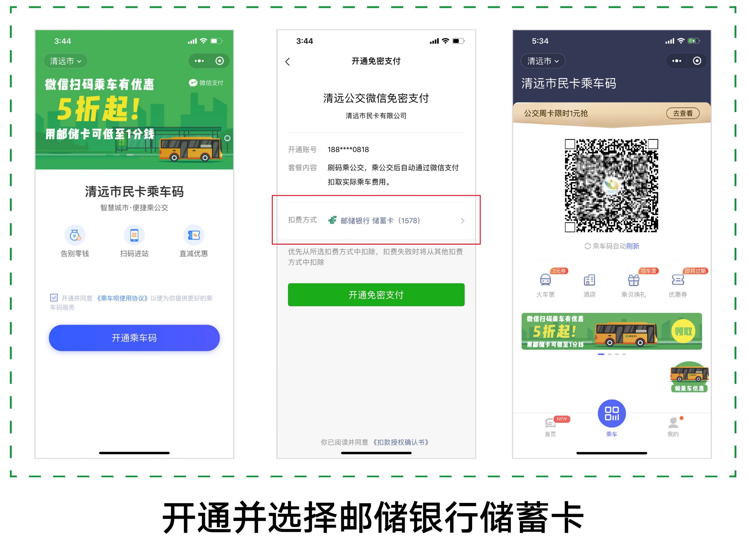 为了让更多市民体验刷码乘车的便捷,即日起至2020年10月31日,微信支付联合清远邮政公司及邮储银行和同程对用户给予乘车优惠,每位用户最多可解锁15张乘车优惠券,最高可享1分钱乘车。