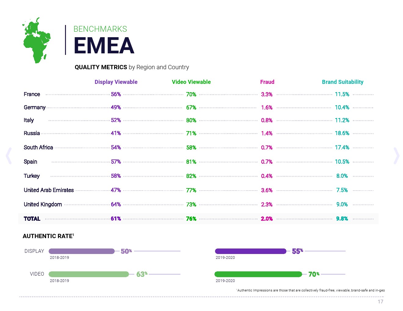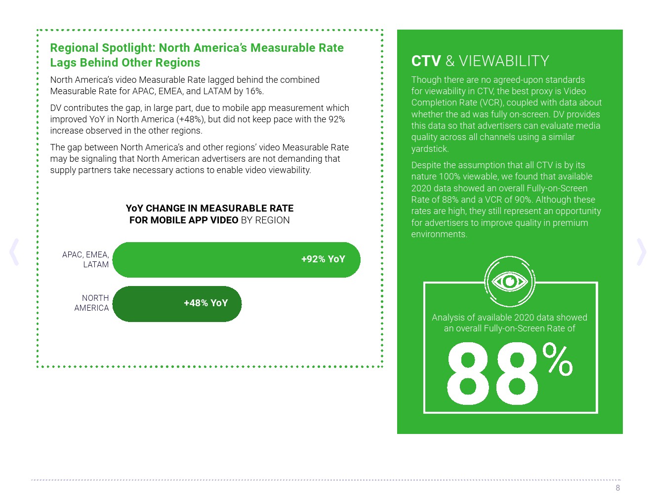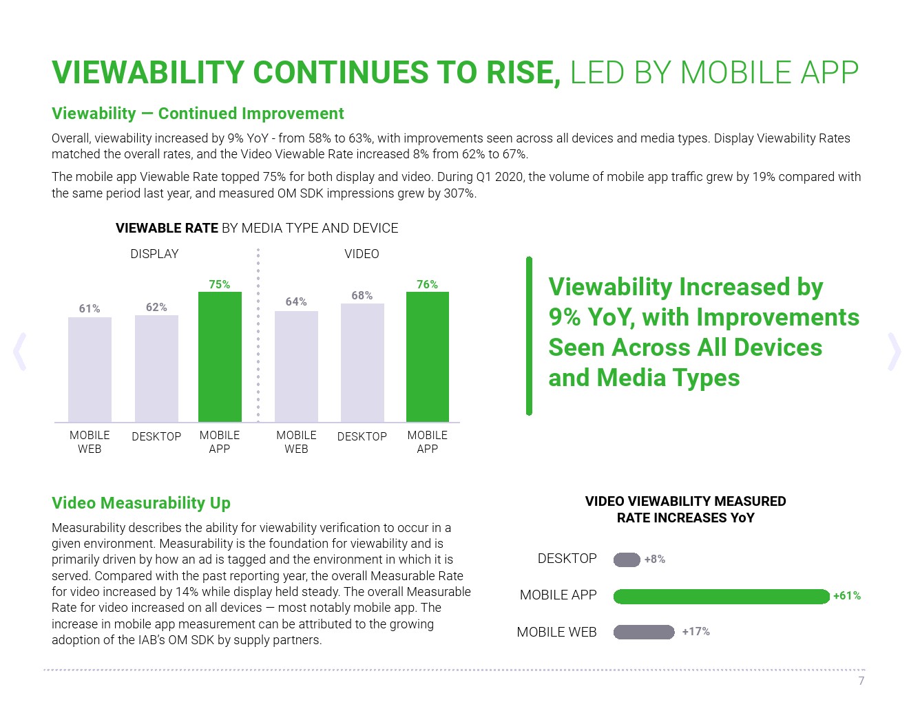可见度同比提高(2020:59%,2019年:54%),视频的可见度持平(2020:66%,2019年:66%)。总体视频可见度保持相对稳定,马来西亚的可见度上升了78%,越南上升了31%,澳大利亚上升了14%,移动应用程序的视频可见性总体上升了48%。