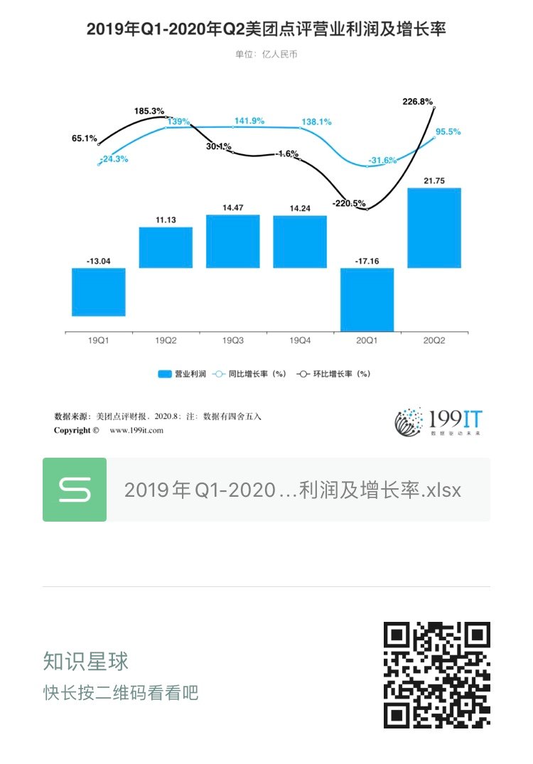 - 2019年Q1-2020年Q2美团点评营业利润及增长率(附原数据表)