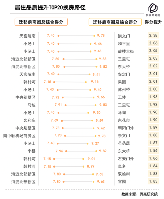 天通苑、月坛成换房热门迁入商圈,同商圈换房居住面积增加10平米