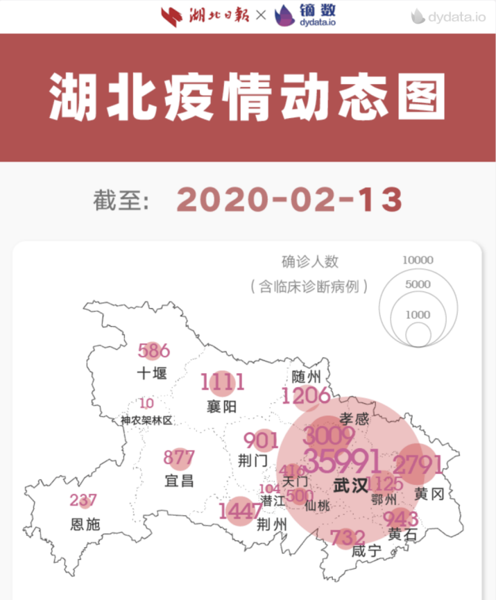 在疫情早期阶段,身在武汉的镝数聚就为央视、新华社以及湖北日报等一线权威媒体的新闻节目和网站提供原始数据和可视化支持。