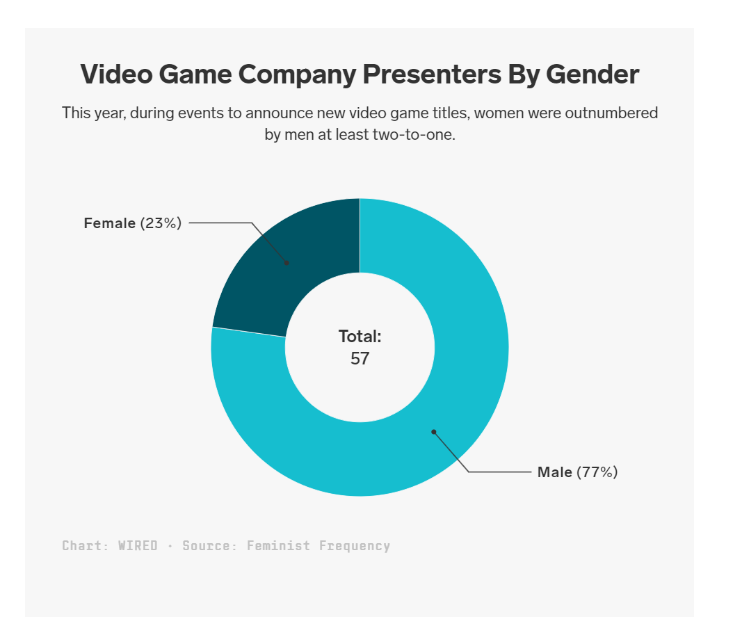 由于男性主角占今年游戏展示的23%,这也标志着今年男性和女性主导的游戏之间的差距最小,但Feminist Frequency对这是否显示出持久的进步持谨慎态度。