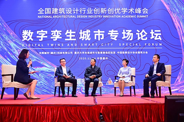 论坛环节由重庆大学未来城市与智慧建造实验室执行主任毛超教授担任主持人,邀请住房和城乡建设部科技委园林绿化专业委员会委员兼秘书长、中国城市规划设计研究院风景院院长王忠杰,中国中建设计集团副总经理、副总建筑师、总部设计四院院长黄文龙,重庆市渝中区历史文化街区管委会主任高琳,以及重庆大学管理科学与房地产学院教授、博导、副院长周滔四位规划、建筑、科研领域的专家,围绕“数字孪生、5G、人工智能等技术在智慧城市中的场景应用、发展潜力、未来展望”等话题展开了探讨。