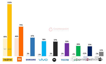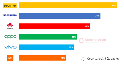 Counterpoint副总监Tarun Pathak补充道,“除了极具竞争力的产品组合,能够快速顺应市场变化也是realme取得成功的关键。realme是一个年轻的品牌,其组织架构和决策流程预计比传统厂商更加灵活高效。疫情期间,消费者纷纷转向线上购买产品,realme迅速响应市场变化,利用电商领域的累积优势满足消费者需求。realme在各大市场推出了延长保修期、7-14天内交付保障、非接触式交付和线上客服等一系列服务。在部分东南亚国家,realme还为本地销售人员提供了直播电商培训,鼓励其本地员工在疫情期间以创新、安全的方式营销产品。某种程度上,realme也拉动了新兴市场数字化经济的发展,这在第三季度为其带来了强劲的增长。”