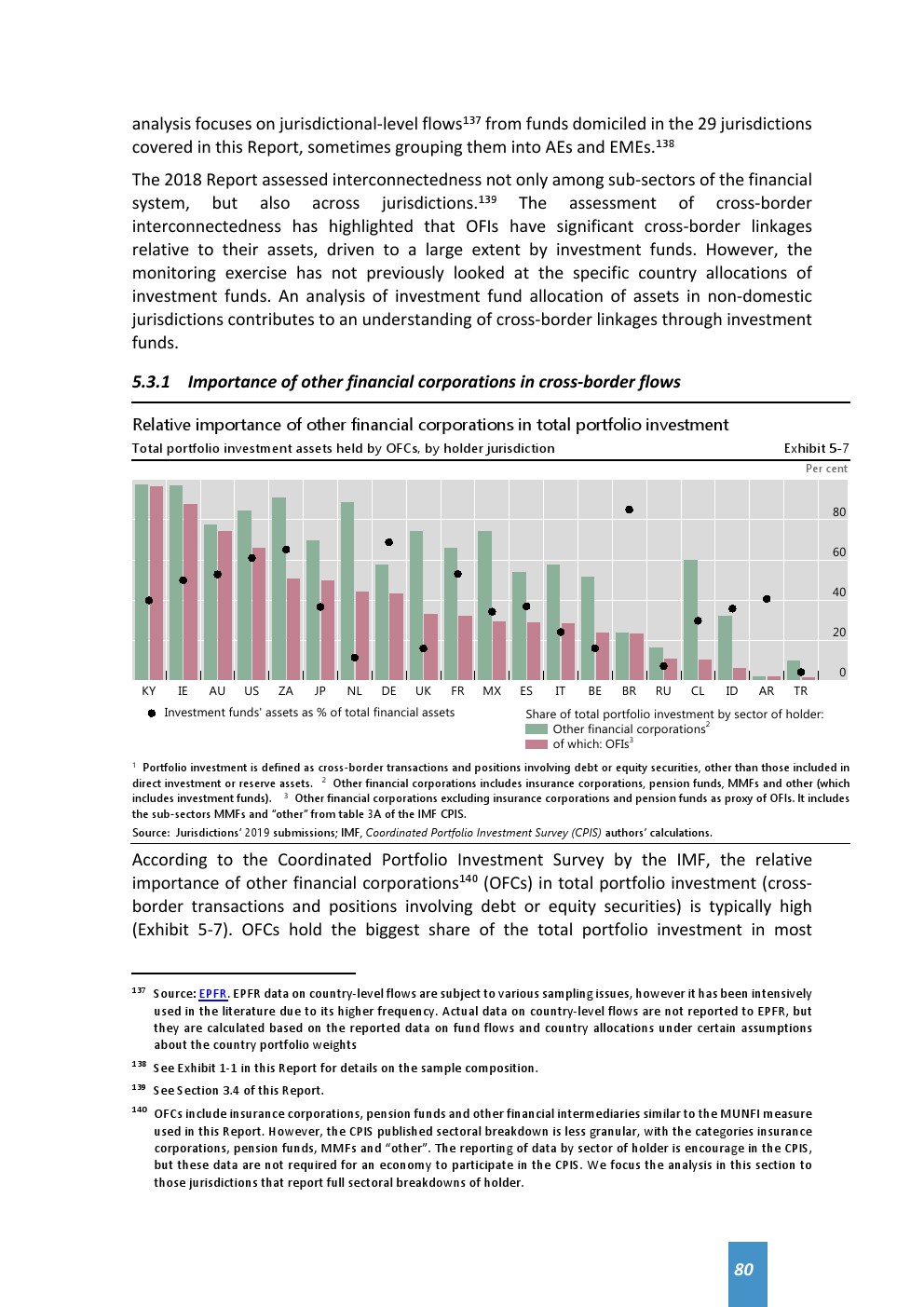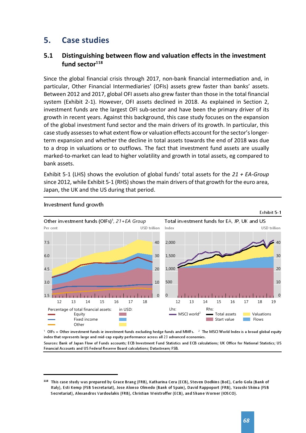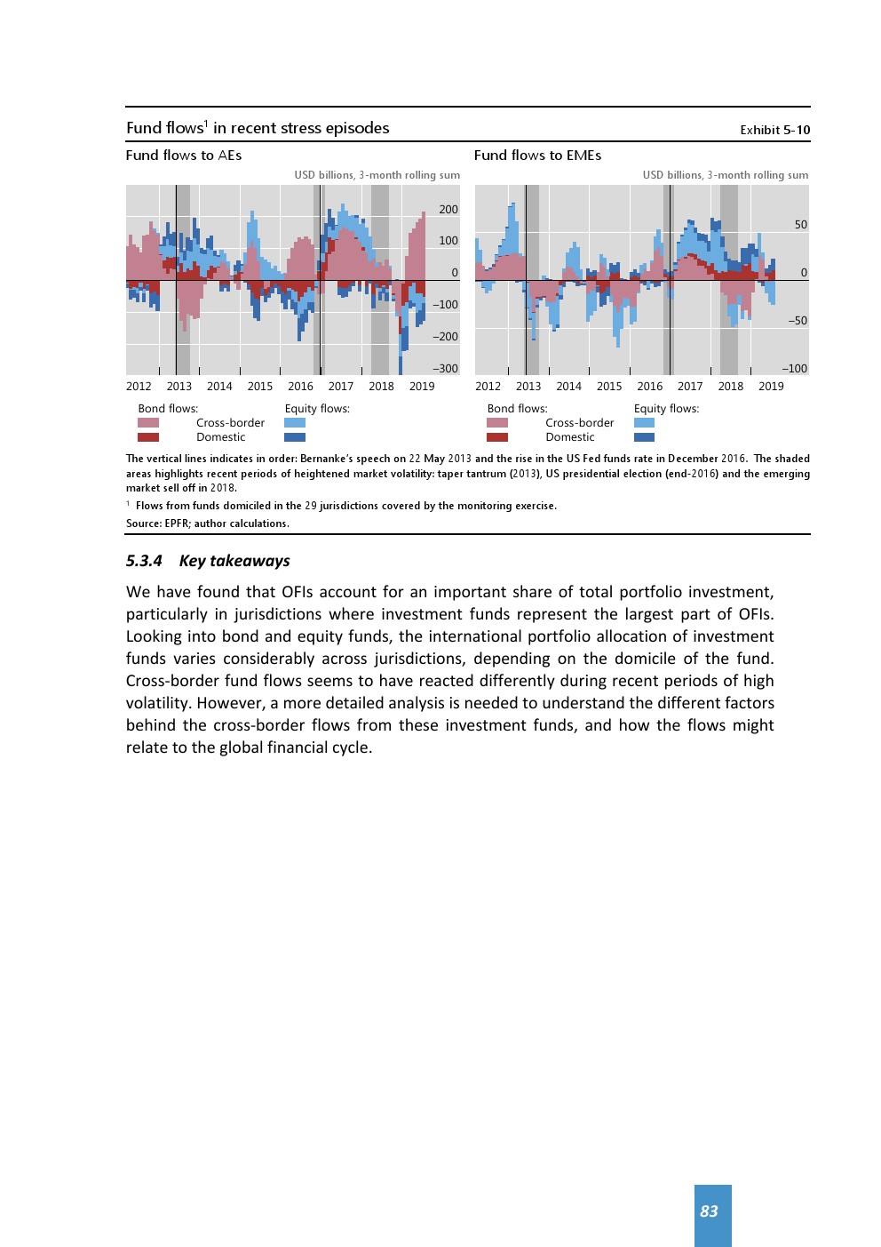 2018年MUNFI(非银行金融中介资产)与前一年相比略有下降,降至183.7万亿美元。这是自2008年以来的首次下降,其原因是2018年底股市下跌导致OFI(其他金融中介)资产下降0.4%,降至114.3万亿美元。股市下跌使投资基金(尤其是股票基金)持有的金融资产的价值下降,尽管此后市场已经反弹,总体上扭转了这一趋势。