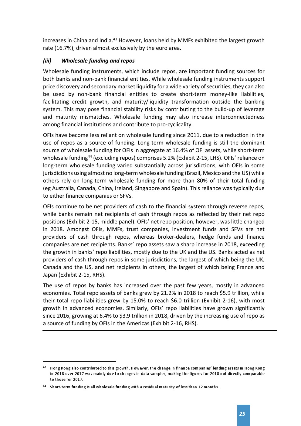 OFI的回购资产和负债在2018年有所增加,回购净额基本保持不变。 银行回购资产的增长超过了可再分配性。