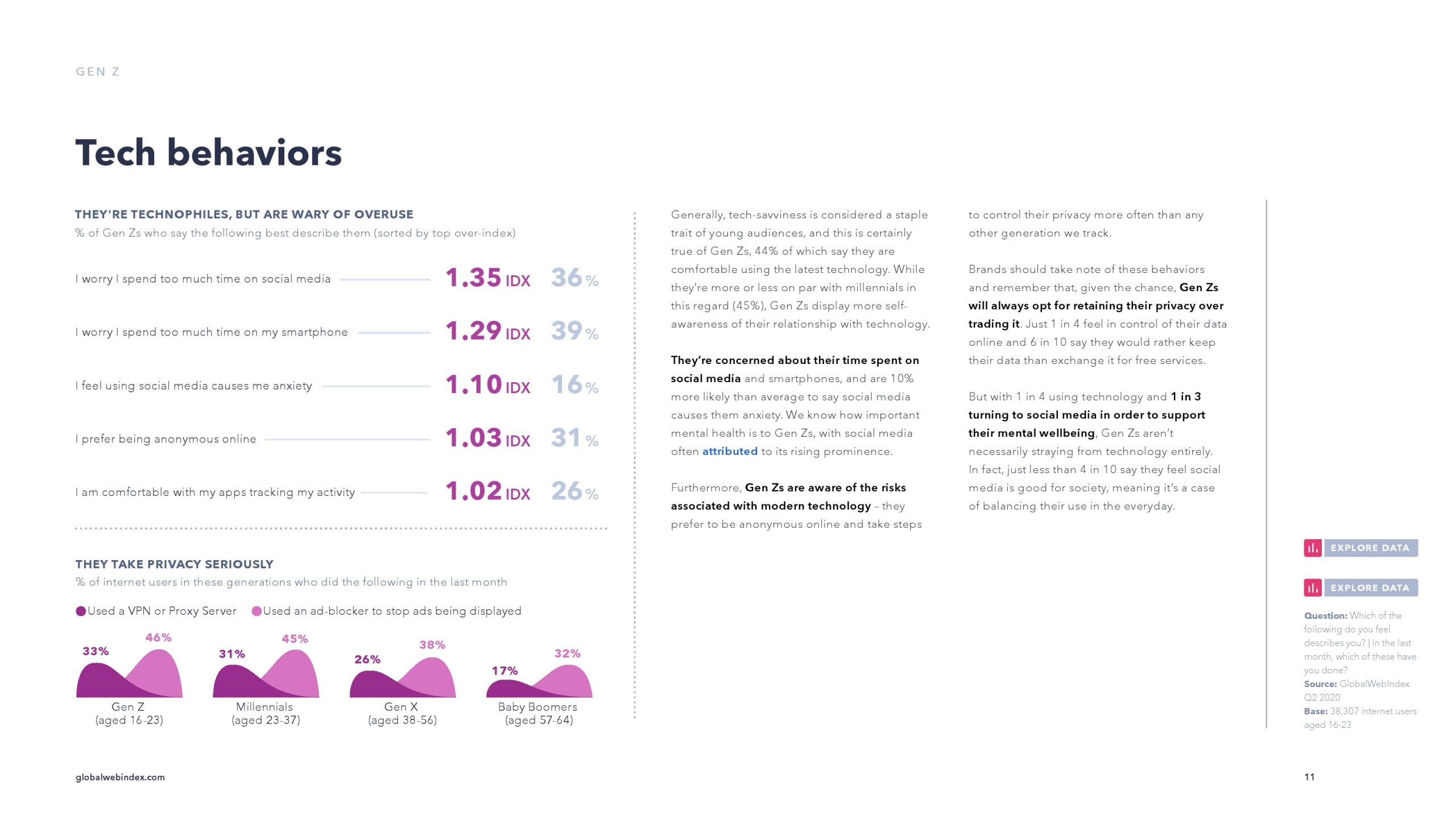 精通科技被认为是年轻受众的主要特征,Z世代当然也是如此。但是,他们意识到了与现代技术相关的风险,他们比其他任何一代人都更频繁地采取措施控制自己的隐私,而且他们也意识到了屏幕使用量。