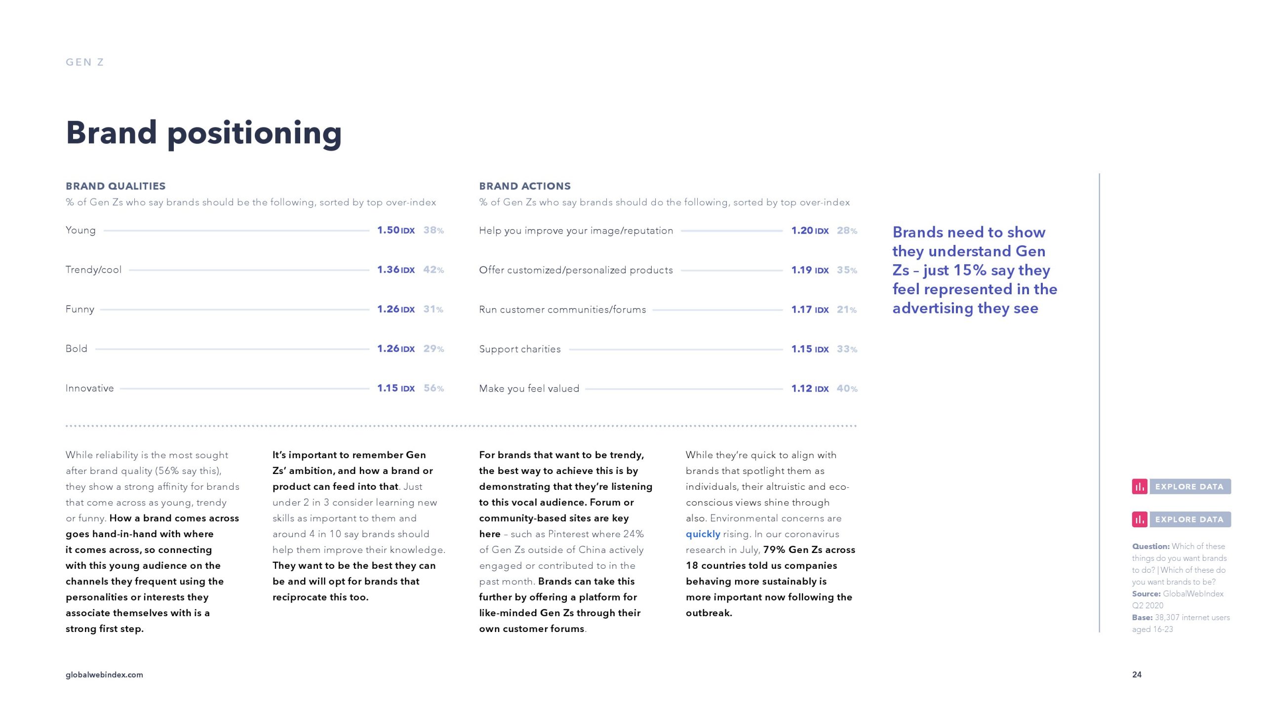 只有15%的Z世代表示,他们在看到的广告中感觉到了自己的存在,这意味着品牌需要迎头赶上。传统品牌在这里几乎不会取得成功,Z世代想要这些品牌的可能性要低16%,他们更喜欢年轻、时尚或有趣的品牌。