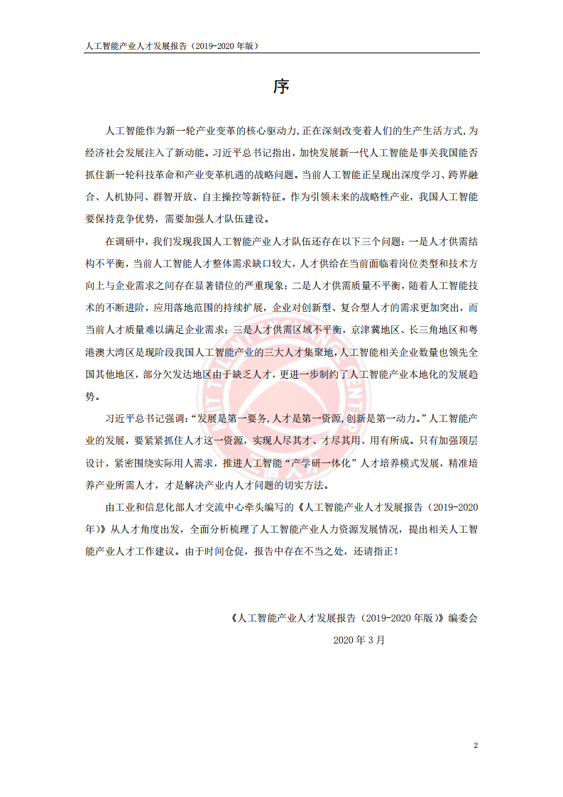 为此,报告提出三方面建议:一是政府要加强人工智能产业人才培养的顶层规划,引导人工智能产业人才发展稳步前行;二是加快人工智能“政产学研一体化”人才培养生态体系建设,促进人工智能产业人才供给与产业发展需求相匹配;三是加强国际人才交流合作,鼓励区域人才流动。