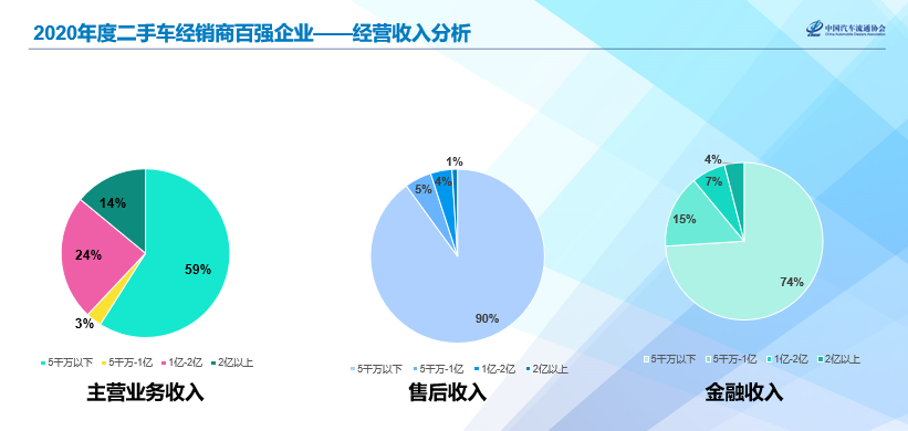 从零售销售额的金额,5000万以下的占4%,5000万到1亿的占7%,1亿到2亿占30%,2亿占59%,从这个推荐上来的百强排行榜,如果车平均价值20万,每个月卖100台以上的。批发5千万以下的是52%,5千万到1亿的占23%,1亿到2亿占11%,2亿以上的占14%。