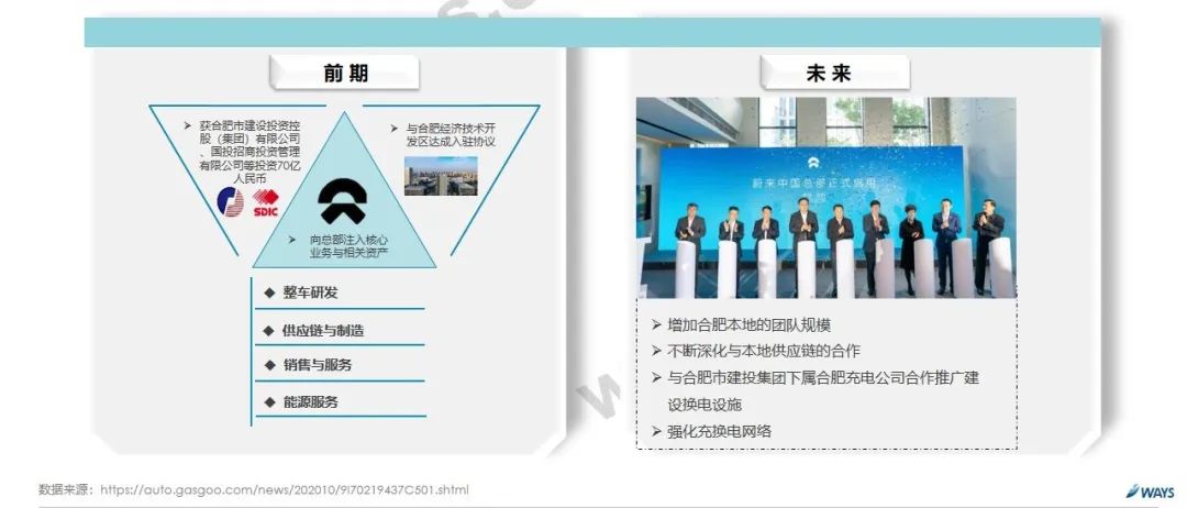 - 10月9日,蔚来汽车宣布其位于安徽自贸试验区合肥片区经开区块的蔚来中国总部正式启用,未来将更深层次推动蔚来与合肥市的战略关系。