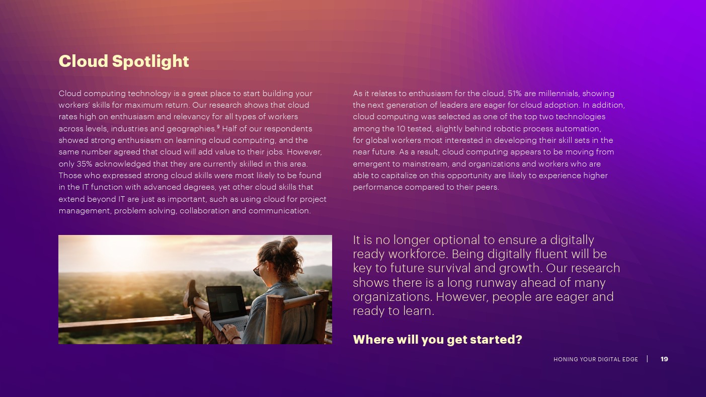 当大流行袭来时,每个人都必须迅速采取行动并加速其数字化转型,然而,很少有公司在数字化方面足够成熟,能够满足过渡和释放新价值所需的规模和速度。要想在当今环境中成功,企业需要支持其员工开发新技能,从而充分发挥其潜力和创造力,并磨练其数字技能。