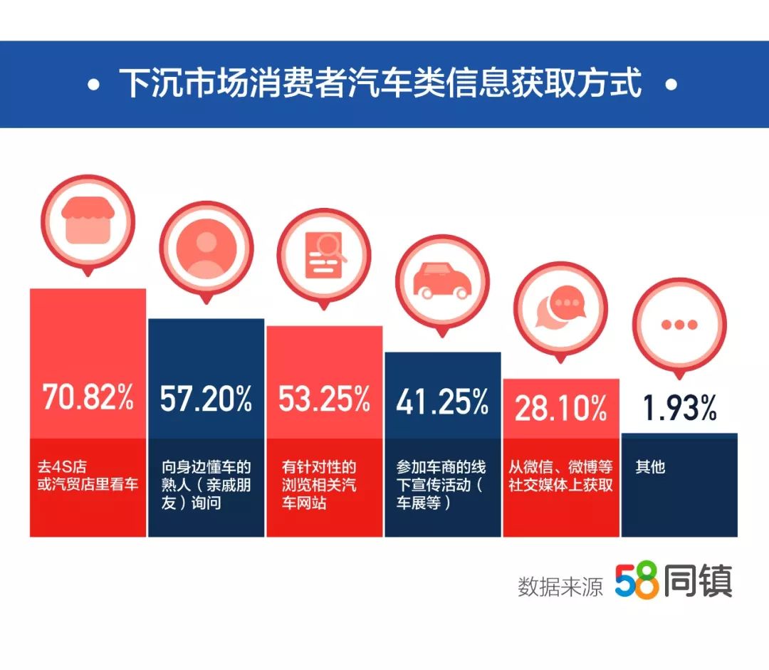 汽车作为居民消费中的“大件”,受到越来越多县域消费者的关注。今年9、10月份,基于下沉市场“熟人社会”的特点,58同镇在下沉市场的100多个乡镇和县城,总计执行387场线下小型车展,并对县域汽车消费者进行了调研,发布《下沉市场汽车消费趋势报告》,对汽车消费行为趋势进行研究分析。