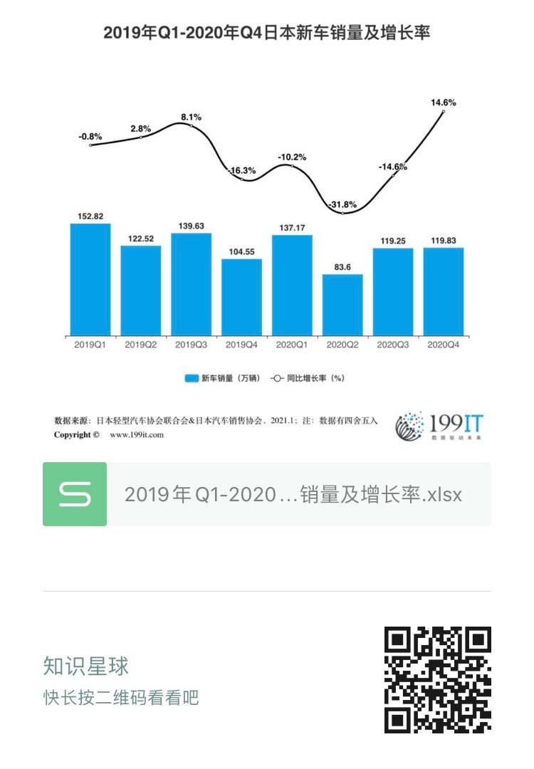 - 2019年Q1-2021年Q1日本新车销量及增长率(附原数据表)