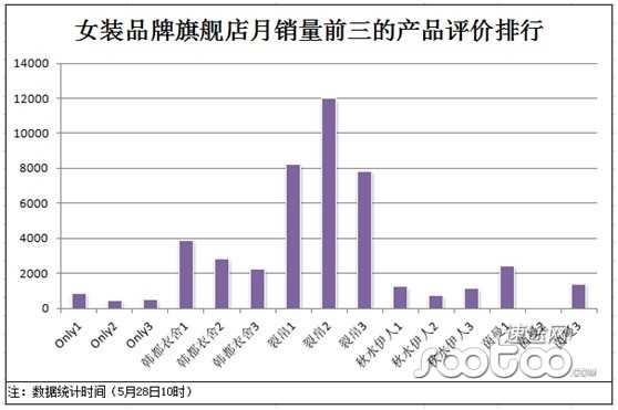 从一家店铺的评价率和产品的累计评价就看一下看出产品的热销程度。上图是五家店铺月销量前三的产品的累计评价量。评价的差中好我们暂且不论,有评价量才会有质的转变,一家店铺或一件产品没有任何评论,又谈何评价好坏呢。