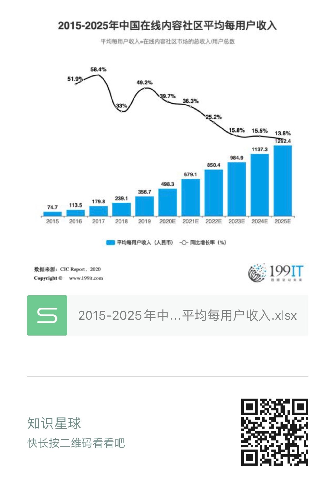 2015-2025年中国在线内容社区平均每用户收入(附原数据表) ​​​​