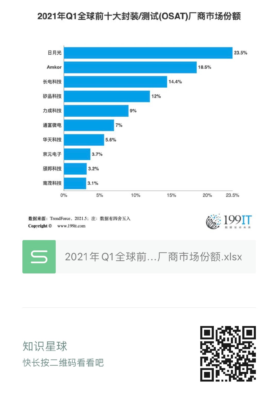 2021年Q1全球前十大封装/测试(OSAT)厂商市场份额(附原数据表) ​​​​