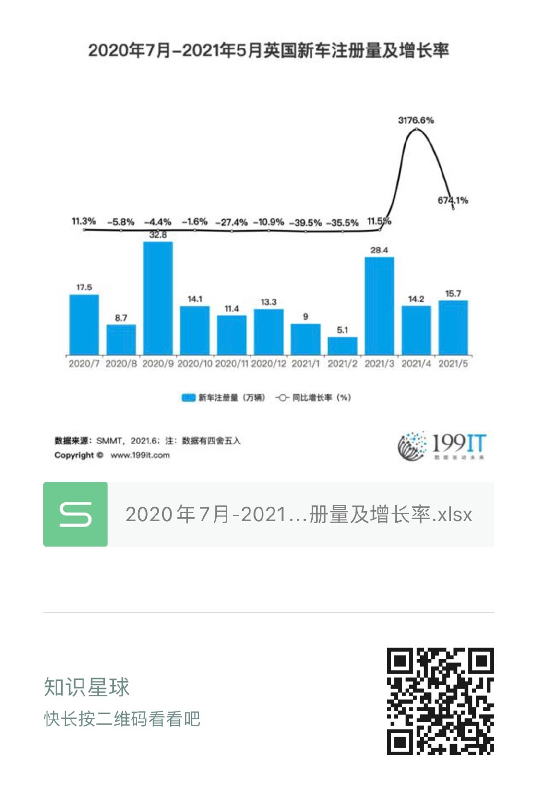 - 2020年5月-2021年4月英国新车注册量及增长率