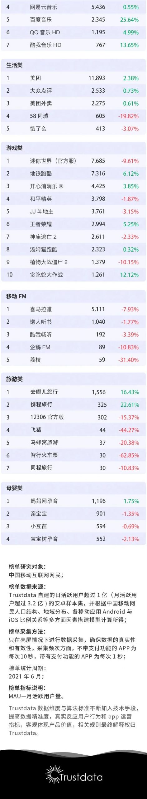 Trustdata:2021年6月移动互联网全行业排行榜 更多阅读:Trustdata:2020年7月移动互联网全行业排行榜Trustdata:2022年10月移动互联网全行业排行榜Trustdata:2019年7月移动互联网全行业排行榜Trustdata:2020年11月移动互联网全行业排行榜Trustdata:2020年6月移动互联网全行业排行榜Trustdata:2020年12月移动互联网全行业排行榜Trustdata:2020年3月移动互联网全行业排行榜Trustdata:2021年4月移动互联网全行业排行榜Trustdata:2020年2月移动互联网全行业排行榜Trustdata:2021年5月移动互联网全行业排行榜Trustdata:2020年1月移动互联网全行业排行榜Trustdata:2019年12月移动互联网全行业排行榜Trustdata:2019年11月移动互联网全行业排行榜Trustdata:2019年10月移动互联网全行业排行榜Trustdata:2020年10月移动互联网全行业排行榜