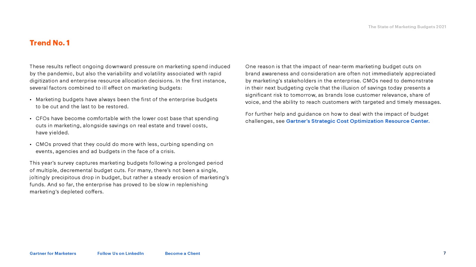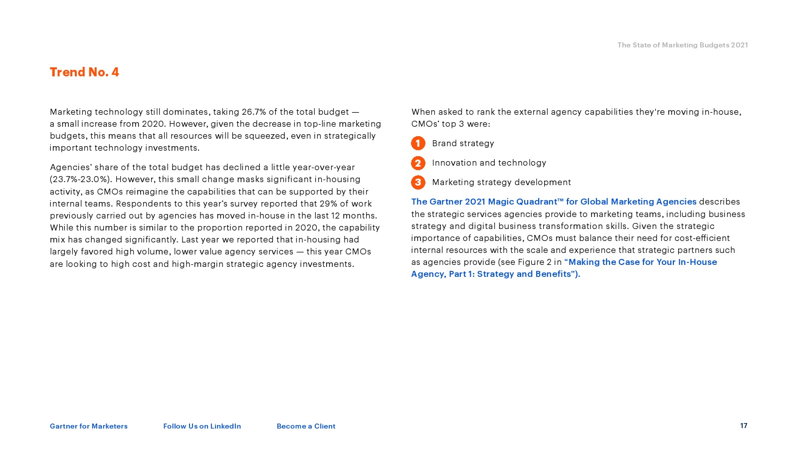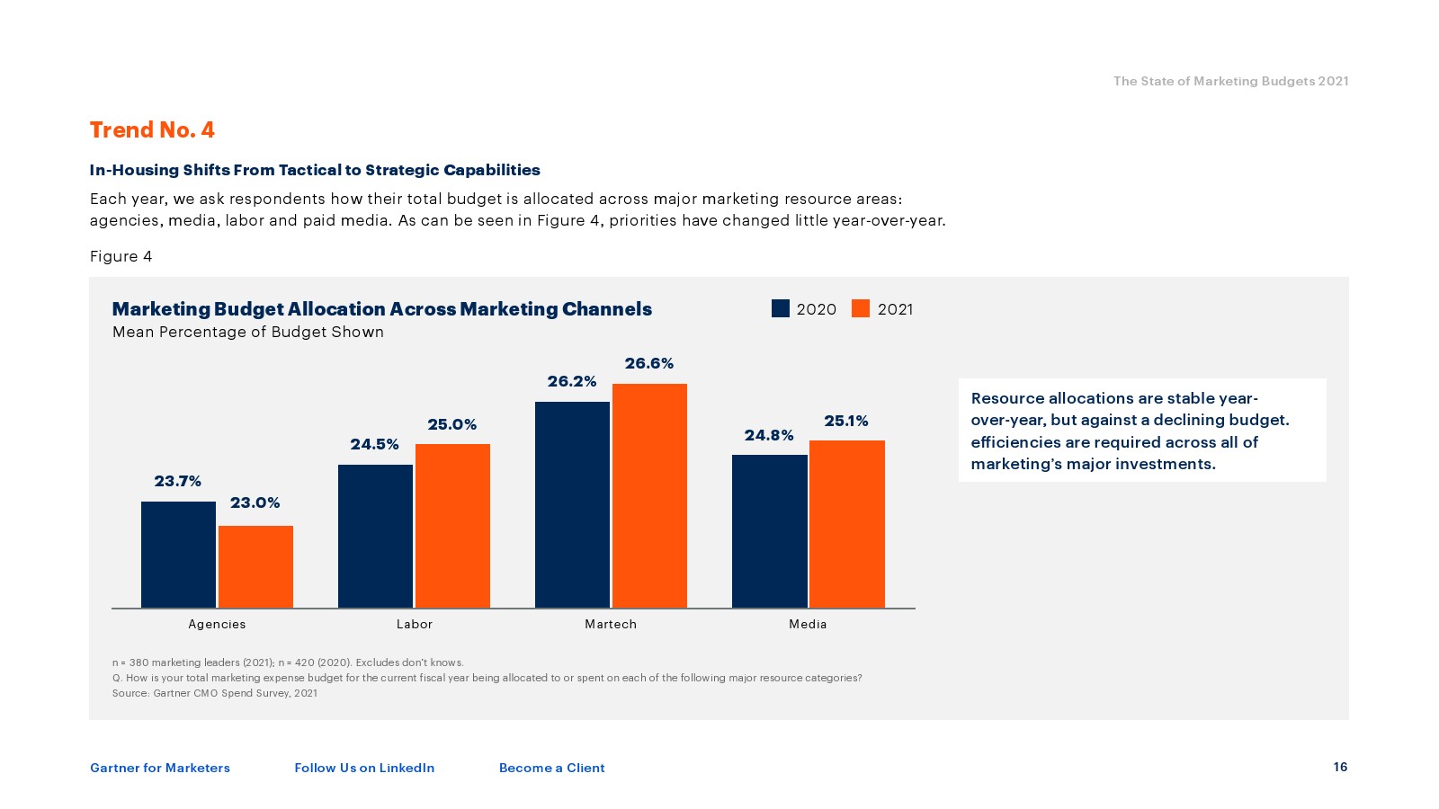 今年的快照显示,营销预算占公司收入的份额从2020年的平均11%下降到2021年的6.4%,下降了4.6个百分点。