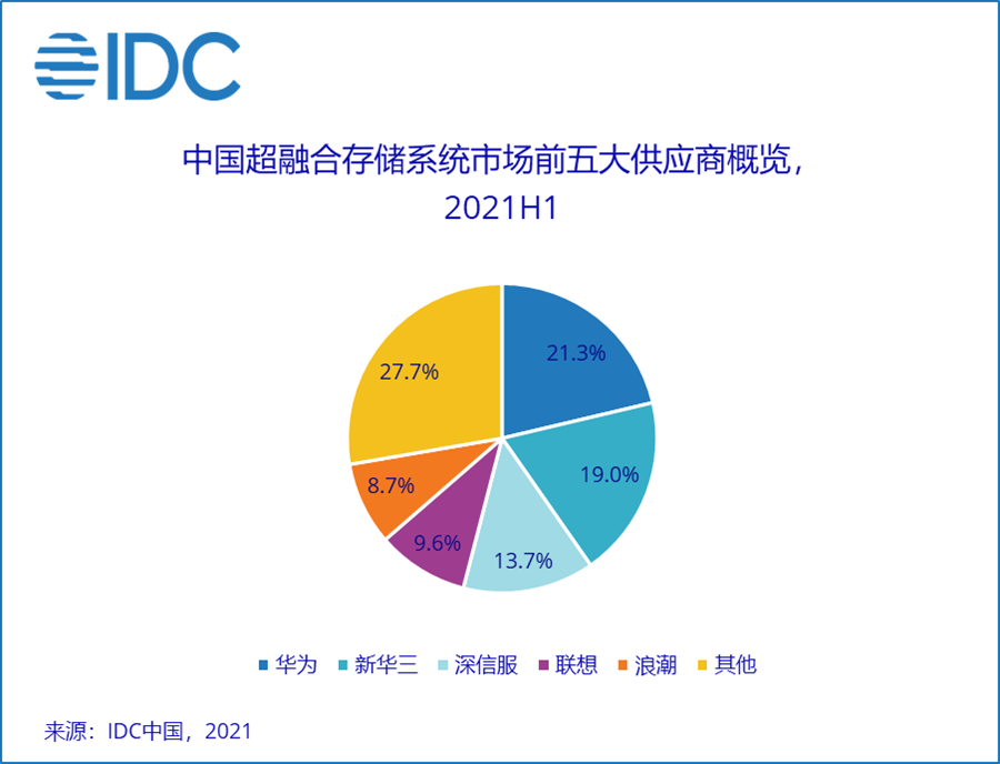 目前,HCI系统已经不仅限于中小企业用户,技术的发展推动其被应用于更多的关键业务,甚至是实时应用这种高性能需求的场景。结合中国外置存储市场整体数据来看,2021年上半年,头部的三家技术供应商的HCI系统硬件出货比例最低为15%以上,HCI产品线已经成为“兵家必争之地”。