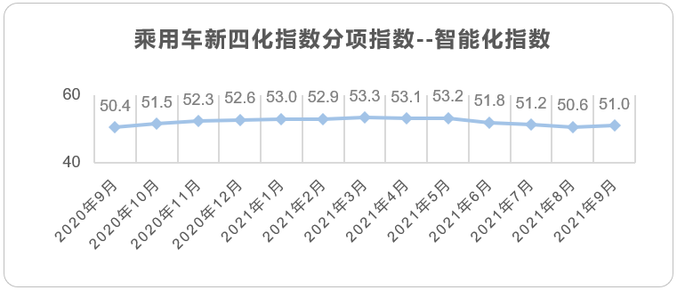 乘联会&安路勤: 2021年9月乘用车新四化指数为66.8 中国汽车流通协会汽车市场研究分会(乘用车市场信息联席会,简称乘联会)联合上海安路勤企业管理咨询有限公司(简称安路勤)联合发布的乘用车新四化指数,旨在定期监控国产乘用车市场的新四化发展进程,并通过历史数据比对,判断未来发展趋势。 2021年9月乘用车新四化指数为66.8,相比2021年6月的66.2有所回升。其中电动化指数为21.1;智能化指数为51.0;网联化指数为35.9。 通过对2020年9月起的乘用车新四化指数进行追溯计算,可以看到最近13个月来的乘用车新四化指数走势变化。 目前,乘用车新四化指数有三个分项指数,分别为电动化指数、智能化指数和网联化指数。 2021年9月电动化指数为21.1,相比2021年8月明显快速提升。 2021年9月智能化指数为51.0,与2021年8月相比基本持平。 2021年9月网联化指数为35.9,与2021年8月相比快速增长。 2021年9月整体市场销量有所回升但幅度有限,同比下降17.3%,环比8月增长9.0%。从数据表现上来看9月的市场回暖将带动后续第四季度销量提升。9月新四化整体指数有所提升,尤其是电动化指数再创新高,首次突破20%大关。而智能化&网联化也有所微升,表示国内芯片供应得到部分的缓解。 2021年9月新四化整体指数有所提升。电动化指数首次突破20.0,已经达到2025年新能源车20%市场份额的规划目标。特斯拉9月销量表现亮眼;“蔚、小、理”逐步成为新造车势力第一梯队;大众ID系列也在逐步抢占新能源市场。虽然“缺芯”有所缓解,但后续的生产供应仍是制约第四季度车市销量增长的决定性因素。网联化指数近期增速较快,标志着上网功能将逐步开始成为新车必备配置。智能化指数更易受芯片影响而波动,但整体指数呈上扬趋势。 从目前新能源市场的销量数据表现,2021年新能源汽车市场的政策导向与市场导向相比较,市场导向的增量比例在加重。消费者对于新能源产品接受程度逐步提高,呈一线向二、三线城市扩张的趋势。同时随着新能源市场产品的快速推广,智能化&网联化指数会直接影响产品竞争力。后续的智能化&网联化指数提升也将是必然趋势。预计2021年第四季度新四化指数仍将呈整体上扬趋势,尤其是电动化指数。 更多阅读:乘联会&安路勤:2019年12月乘用车新四化指数为53.8乘联会&安路勤:2022年1月乘用车新四化指数为64.3乘联会&安路勤:2022年3月乘用车新四化指数为73.4乘联会&安路勤:2023年1月乘用车新四化指数为78.7乘联会&安路勤:2021年12月乘用车新四化指数为69.4乘联会&安路勤:2022年8月乘用车新四化指数为78.0乘联会&安路勤:2022年11月乘用车新四化指数为82.9乘联会&安路勤:2021年5月乘用车新四化指数为66.2乘联会&安路勤:2021年6月乘用车新四化指数为65.8乘联会&安路勤:2021年1月乘用车新四化指数为65.3乘联会&安路勤:2021年4月乘用车新四化指数为66.1乘联会&安路勤:2020年6月乘用车新四化指数为53.9乘联会&安路勤:2020年5月乘用车新四化指数为53.2乘联会&安路勤:2020年4月乘用车新四化指数为53.8乘联会&安路勤:2022年6月乘用车新四化指数为74.3