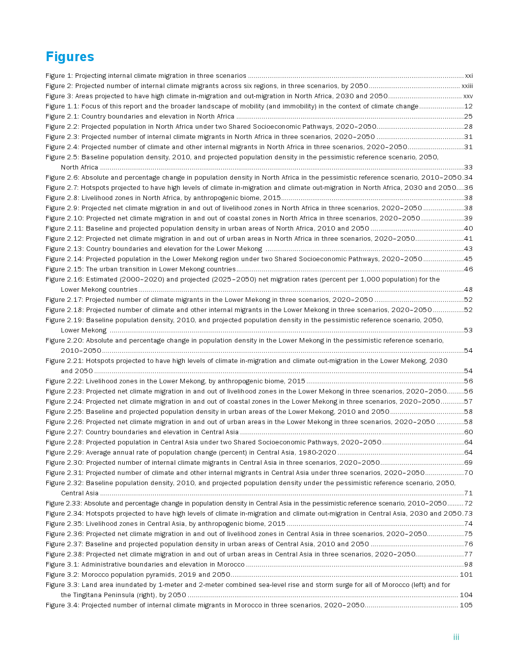 模型结果显示了每个国家和地区内部气候移民的空间模式,包括 2030 年出现的热点,到 2050 年如何变得更加明显。气候变化的影响已经开始显现,并将改变各地区农村、沿海和城市系统生计和资源条件。