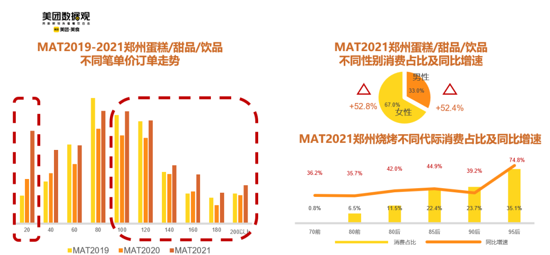 美团数据观显示,从MAT2019-2021年线上消费者代际分布来看,95后占比最大且增速最为明显,已经成为餐饮消费的主力军。