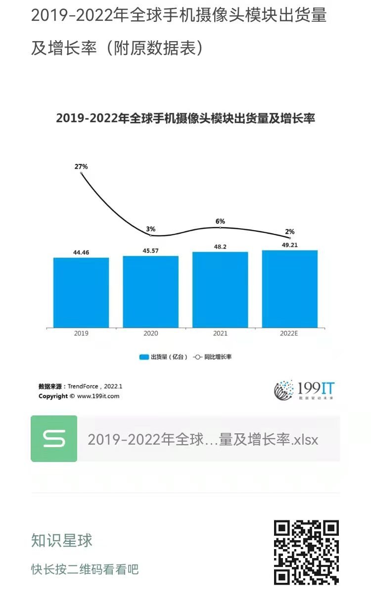 2019-2022年全球手机摄像头模块出货量及增长率(附原数据表) ​​​​