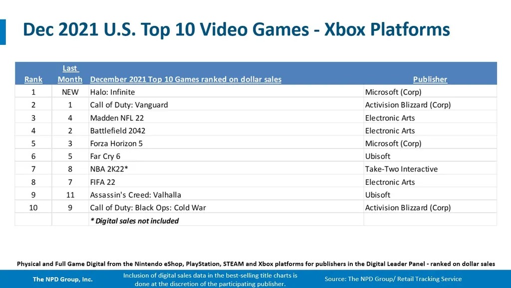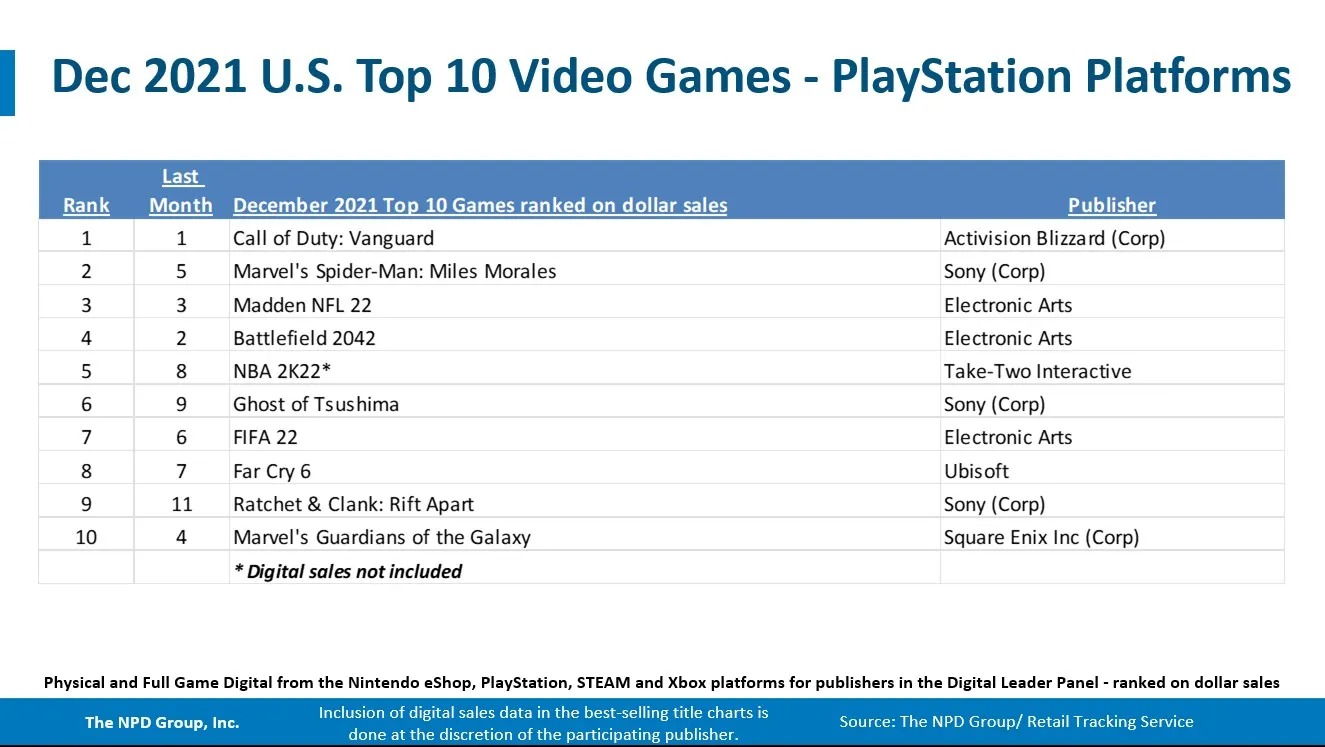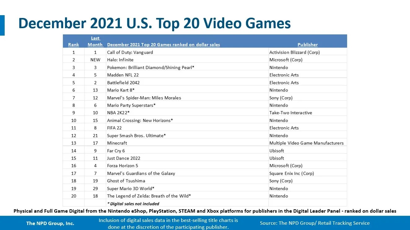 转到视频游戏的销售上,《使命召唤:先锋》尽管喜忧参半,但被誉为2021年12月最畅销的视频游戏。事实上,《使命召唤》作为一个整体,连续13年被列为追踪美元销售的最畅销视频游戏系列。
