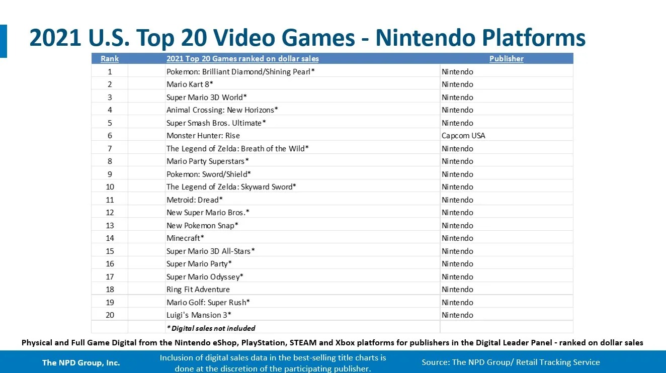 根据 NPD Group 公布的最新市场报告,虽然在硬件销售方面下降了 3%,但是任天堂依然获得了相当大的推动力,其 Switch 平台成为 2021 年 12 月最畅销的主机。