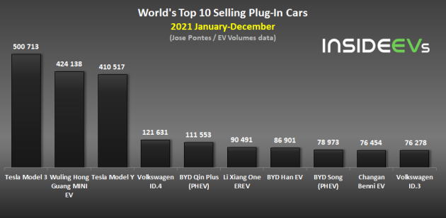 此外,特斯拉全年销量超过93.6万辆,在新能源汽车厂商中排名首位,这也是该品牌连续四年获此殊荣。比亚迪、上汽通用五菱位列二、三,销量分别为593878辆、456123辆。