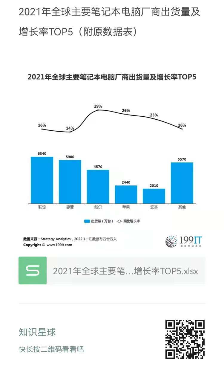 2021年全球主要笔记本电脑厂商出货量及增长率TOP5(附原数据表) ​​​​