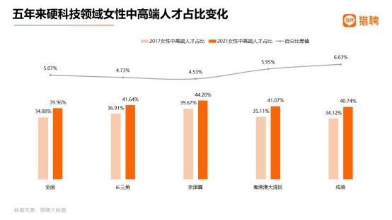 女性在硬科技占比逐年提升,成渝、大湾区提升最为明显