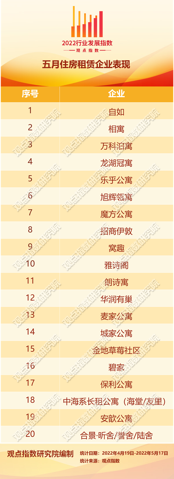 据观点指数监测,报告期内样本企业仅城家新增高级公寓深圳沙头角地铁站店落地,相较上个报告期乐乎、有巢公寓等企业有新增项目开业,企业开店积极性不高。究其原因,或是由于多地频繁爆发零星疫情挫伤企业开店积极性,同时节后租房旺季即将过去,企业减缓开店进度。