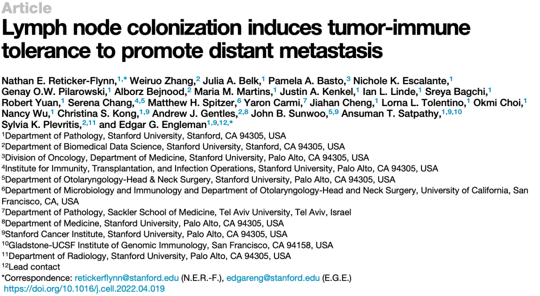 近日,斯坦福医学院Edgar G. Engleman和Nathan E. Reticker-Flynn领导的研究团队,就以上问题在国际顶尖学术期刊《细胞》发表重要研究成果[2]。