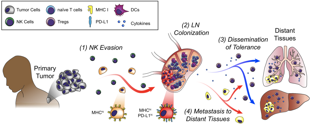 回答了肿瘤细胞如何逃避免疫杀伤,实现从原位到淋巴结的转移后,研究人员试图解答肿瘤细胞淋巴转移如何促进远端转移?