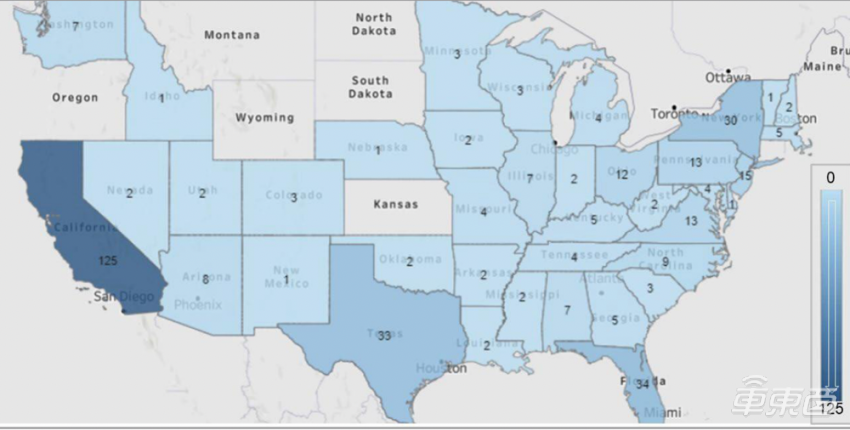 有125起L2级自动驾驶事故都发生在加利福尼亚州,这主要是因为该地区技术更为先进,大多数自动驾驶驾驶公司如Waymo、Cruise或车企都在加利福尼亚州测试自动驾驶技术。