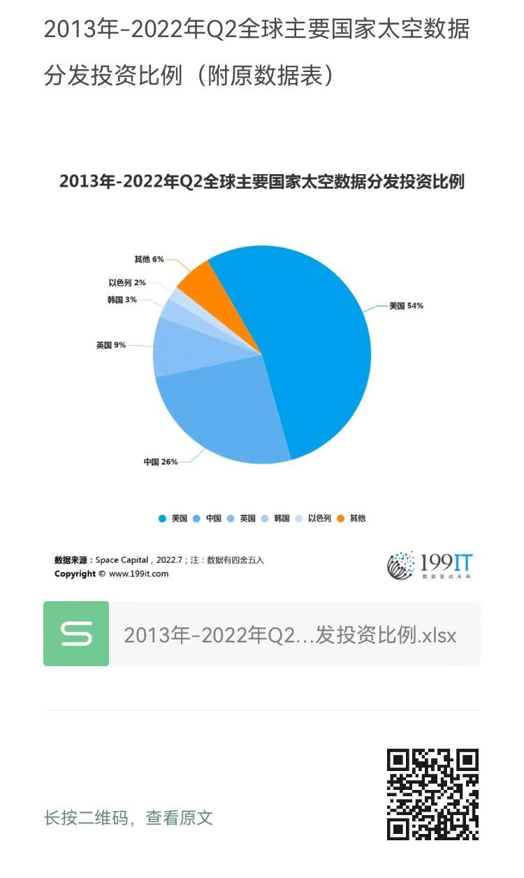 2013年-2022年Q2全球主要国家太空数据分发投资比例(附原数据表) ​​​​