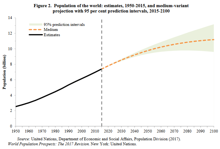 奥地利维也纳大学维特根斯坦人口学和全球人力资本中心基于一些假设,预测全球人口将在2050年达到87亿的峰值,其中特别是妇女受教育程度和健康程度如何是关键因素。奥地利维也纳大学维特根斯坦人口学和全球人力资本中心创始人,著名的人口学专家Wolfgang Lutz院士认为,基于该中心的维特根斯坦“快速发展论”预测,全球人口将在2050年达到87亿的峰值。