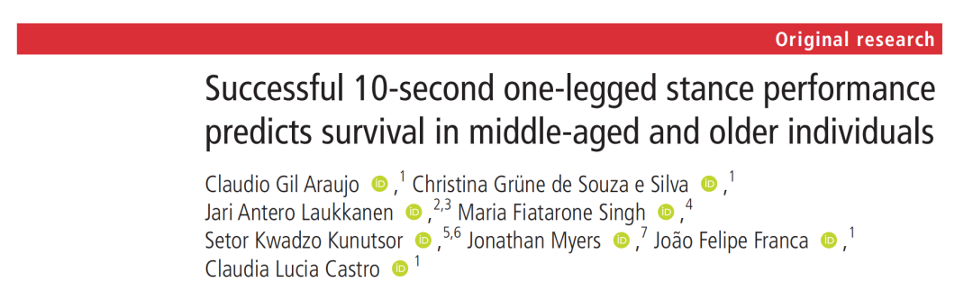 因此,Claudio Gil Araujo团队开展了一项前瞻性研究,将平衡能力评估与跌倒以外的临床结果(如全因死亡率)联系了起来,并希望可以将平衡能力测试作为评估老年人全因死亡率的指标。