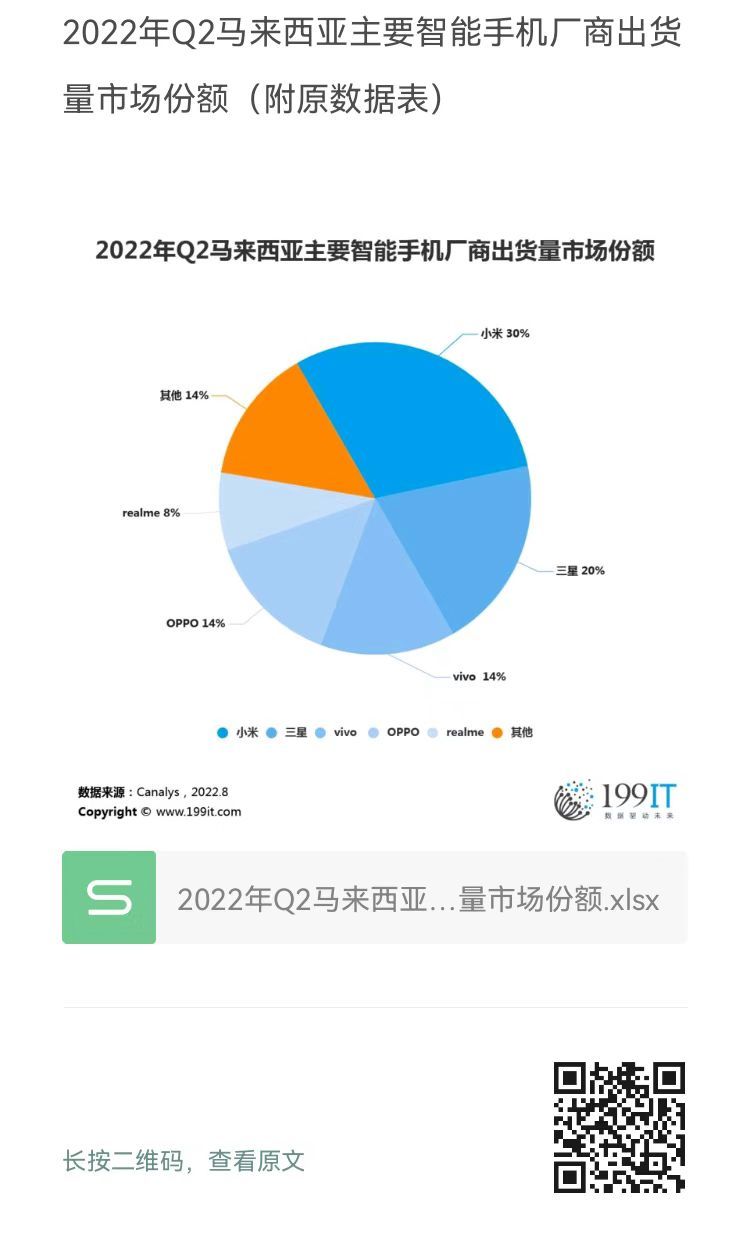 2022年Q2马来西亚主要智能手机厂商出货量市场份额(附原数据表) ​​​​