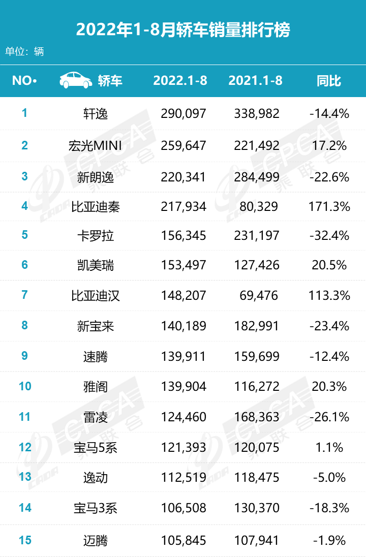 据中国汽车流通协会汽车市场研究分会(乘联会)最新零售销量数据统计,8月份国内狭义乘用车市场销量达187.1万辆,同比增长28.8%,环比增长2.9%;1-8月份累计销量1295.0万辆,同比增长0.1%。