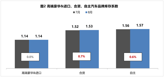 二、高端豪华&进口库存系数持平,合资、自主品牌库存系数微涨